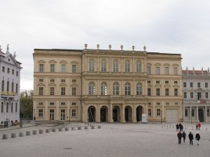 In Folge des Zweiten Weltkrieg waren große Teile der Potsdamer Innenstadt zerstört. Das durch die Bombardierung 1945 beschädigte Stadtschloss wurde 1959 endgültig abgerissen, da es für die damalige Regierung als ein Zeichen der Monarchie galt. Unter dem Motto „Wir bauen ein sozialistisches Potsdam – es wird schön wie nie“ begann der Wiederaufbau der Stadt zu Zeiten der DDR. 1970 wurde für das ehemalige Institut für Lehrerbildung und die Bibliothek Potsdam ein markanter moderner Bau am Alten Markt geschaffen, in den nach der Wende die Fachhochschule Potsdam einziehen konnte.