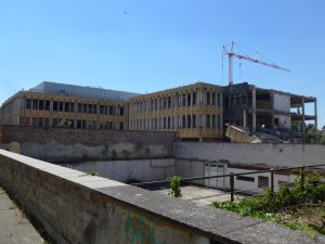 Der  Bau aus den siebziger Jahren dominierte lange Zeit das Gebiet zwischen dem Alten Markt und dem Platz der Einheit, mitten im Zentrum der Stadt. Mit dem Abriss soll Raum geschaffenen werden für eine  Neugestaltung des 25.000 Quadratmeter großen Areals1, welches sich an den Zustand der Vorkriegszeit orientieren soll. Ein Bauprojekt dieser Größe in einer so zentralen Lage sorgt natürlich für Kontroversen. Der Abriss des alten FH Gebäudes hat eine außergewöhnlich hohe Welle an Konflikten hervorgerufen und bundesweit für Aufsehen gesorgt. Der Entschluss der Stadtverwaltung, das Gebäude abzureißen anstatt es zu erhalten, war und ist in Potsdam stark umstritten. Als Protest kam es im letzten Sommer sogar zu einer kurzzeitigen Besetzung des alten Gebäudes der Fachhochschule.