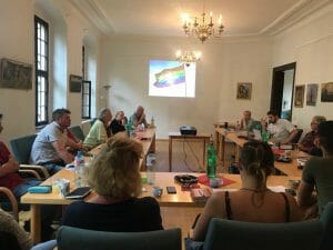 On invitation of Deutsches Rotes Kreuz (Kreisverband Börde) and Integrationsbündnis Wolmirstedt we had a great workshop on Saturday, July 6, in Wolmirstedt (Sachsen-Anhalt). The workshop (10 AM – 5 PM) was made possible by the program Demokratie Leben! of the Bundesministerium für Familie, Senioren, Frauen und Jugend. We discussed democracy (the need of citizens to discuss together the values that bind and the need to deliberate together the main themes of elections before casting a vote), identity (what is it, how does it develop, can it change?), discrimination (what is it, why do people discriminate and how, and what to do against it?), gender equality (what explains the vast gender inequality in Germany?) and homosexuality (how do people become gay, why it is not a disease, why couples of the same sex can form a family able to raise children). Philipp did a great job discussing identity and homosexuality. The newspaper of Sachsen-Anhalt, Die Volksstimme, reported about the event: