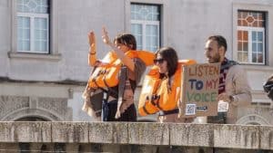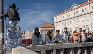 This tool is inspired by the guerrilla marketing methods, where an unorthodox method is used to promote a brand or message. In the realm of activism, it is often used in combination with arts and human activity in public spaces. The guerrilla group developed an action to raise awareness about refugees by wearing lifejackets and space blankets, holding up signs and marching through the city. The signs carried by the group included a QR code to a short video of a refugee talking about his or her life story. The guerrilla action group walked along the canal in the city centre of Aveiro and approached citizens, inviting them to watch the video. The link also included an invitation to the Human Library event in Aveiro (see the next section).