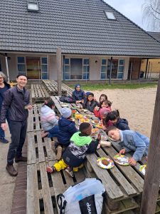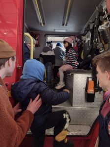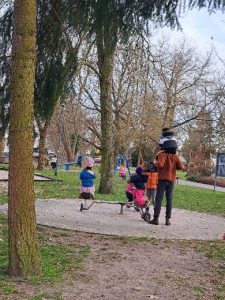 Auch in diesem Projektdurchlauf haben wir mehrere Ausflüge gemacht. Die Gemeinde Rangsdorf organisierte hierfür eine ehrenamtliche Person, welche uns mithilfe eines Kleinbusses an die jeweiligen Ausflugsziele brachte. So machten wir gemeinsam mit der Umweltbildungsstätte des Landschaftspflegevereins Mittelbrandenburg e.V. eine Exkursion in den Rangsdorfer Wald. Diese ähnelte jener, welche wir bereits in der ersten Runde des Projektes unternommen hatten. Die Gruppe konzentrierte sich darauf, alles Mögliche über Frühlingsblumen und wilde Tiere zu erfahren. Ein weiterer Ausflug führte uns zur örtlichen Feuerwehr. Hier lernten die Kinder echte Feuerwehrmenschen kennen und erfuhren jede Menge über ihre Arbeit. Die Kinder durften die Ausrüstung der Feuerwehr inspizieren, im Feuerwehrauto sitzen, Fragen stellen und einige der Ausrüstungsgegenstände wie etwa Straßenschilder, Feuerwehrschläuche und Helme in die Hand nehmen. Zum Abschluss des Projektes fuhren wir gemeinsam zum Rangsdorfer See und gestalteten ein großes Picknick.