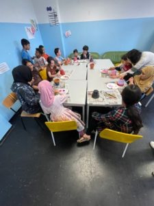 auch sozial zu fördern. Indem wir Traumfänger bastelten, Filme guckten, Blumentöpfe bemalten, Kresse pflanzten und verschiedene Spiele organisierten, wollten wir die Kinder in ihrer persönlichen Entwicklung unterstützen und ihnen gleichzeitig Spaß und Freude bereiten. Durch regelmäßige Ausflüge wollten wir zudem erreichen, dass die Kinder ein besseres Gefühl für ihre Umgebung und eine Orientierung außerhalb der Unterkunft entwickeln. Dies beinhaltete Aktivitäten wie Spielplatzbesuche, Waldschatzsuchen, Natur-Bingo und Müllsammelprojekte, die den Kindern halfen, die Natur zu erkunden und ein Bewusstsein für Umweltschutz zu entwickeln.