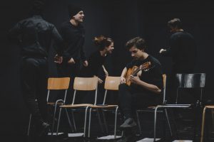 In the beginning, during the writing of the play, the actors made an extensive study of the backgrounds of the refugees, “researching the countries they come from, their culture, religion, the political situation in Europe towards refugees, etc. During the process, we recreated all the scenes mentioned in the stories, for example, border police, ships, refugee camp, violence… Over time, we realized that all of that was distracting from the stories and their point, so we threw it all out. In the end, we sat in a line, dressed in black, and told the stories of those people. There are only two stories left that share common scenes like the ship and running away from the police. We also included some songs that are appropriate, they mostly served us as links between the stories. We also played guitar in some places where it could contribute to the story. The performance lasts two hours and ten minutes. We played three nights in a row. The first and last night were full, and on the second day we had four people. We wanted it to be as intimate as possible so that there is room for 24 people. The audience included professors and students from our academy. After the performance, we always talked with them, they would tell us what we needed to work on acting, but the main impression was of course the topic we dealt with, it was very stressful for some people. Refugees are not presented in the media the way we tried to do, more precisely we only told their stories. The truth from their perspective.”