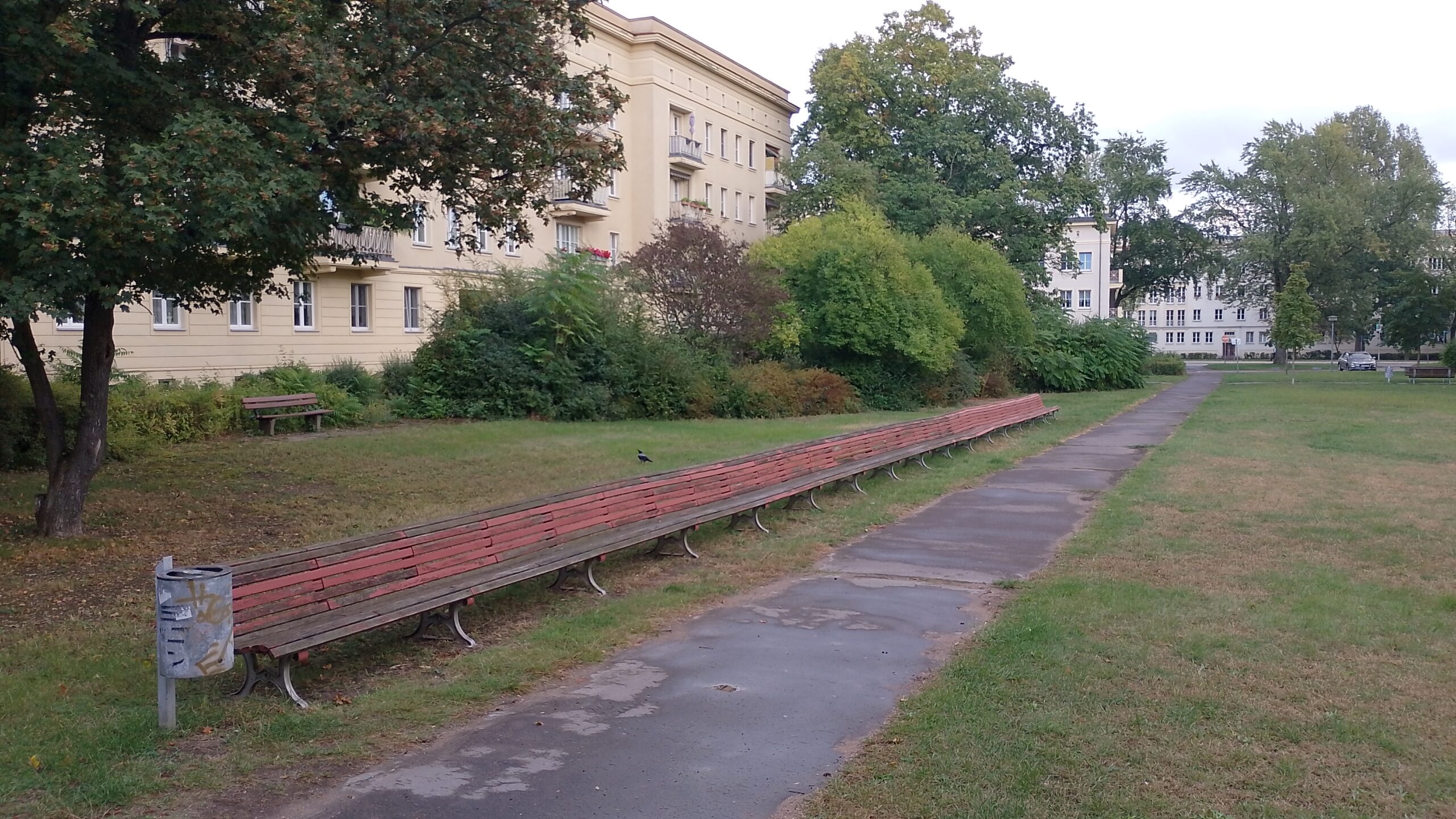 We are in a town on the German-Polish border with a population of around 24,000. It was built in the 1950s, practically from scratch, together with a huge steel factory. The quality of the houses and infrastructure was high in this socialist model town, designed by architect Kurt W. Leucht. Until 1961, it was called Stalinstadt, then Eisenhüttenstadt. The apartments in the symmetrical blocks of flats, decorated with socialist-realist art, were spacious and equipped with central heating, which was a luxury at the time. The large inner courtyards, visible from every apartment, featured parks, playgrounds, and playing fields. The clotheslines were used collectively. There were daycare centers, schools, shops, community centers, and cultural facilities. Especially in the early years, not everyone could live here. You had to be a socialist model citizen, a pioneer. The pioneers looked down somewhat on the people who moved to the city in later years. The carefully planned and now beautifully renovated city center, with money from the West, is today considered an important cultural and urban heritage site.